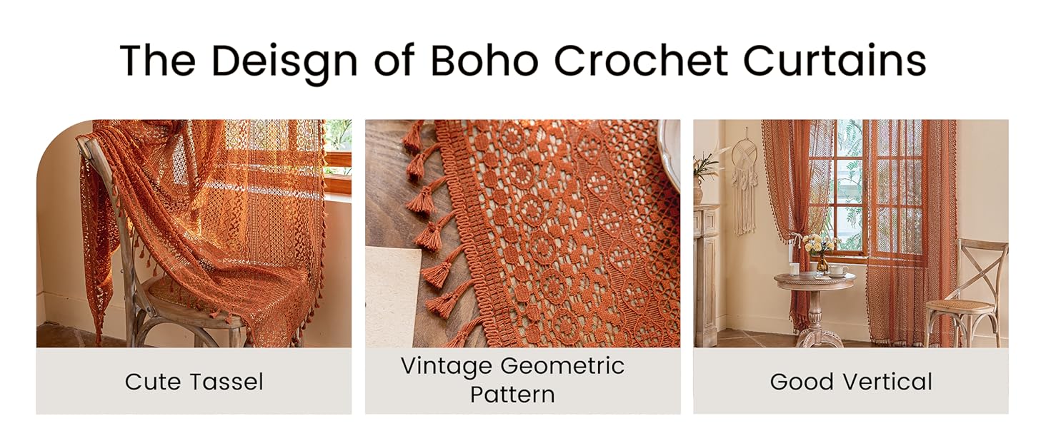 Vintage Room Decor:The crochet tassel curtains can be paired with most color to make your room vintage and lively style and show off your taste and unique style. beige geometric patterns and tassels can add interest and give you a vintage bohemian look