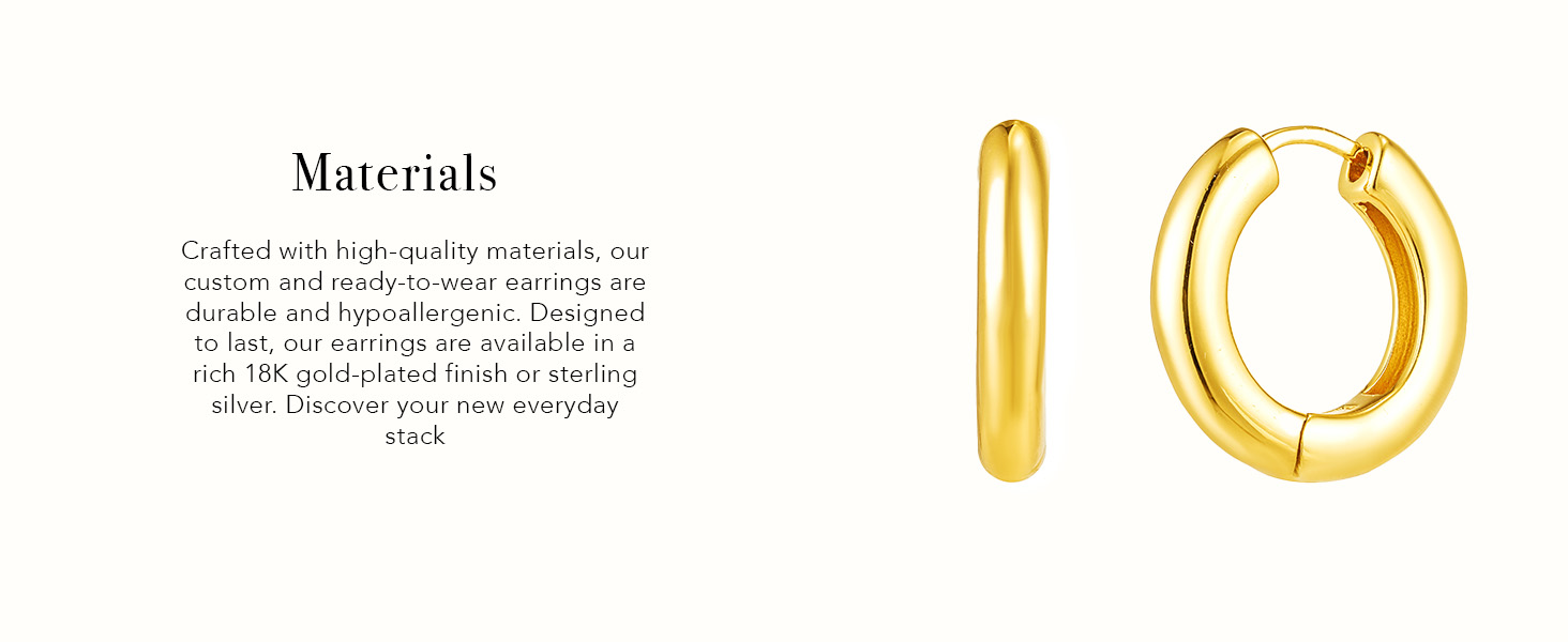 Hoop Earrings ✧ Elevate your everyday ear stack with our curated collection of huggie and hoop earrings, featuring timeless classics and bold croissant-inspired ribbed designs. This versatile assortment includes the 9mm Lucy Hinge Huggie, 10mm Naomi Twisted Hoop, 11mm Morgan Croissant Hoop, 10mm Paris Oval Hoop, 15mm Bold Ribbed Hoop, 12mm Chunky Madison Hoop, and the 9mm Thea Twisted Huggie. Designed for effortless stacking and all-day wear.