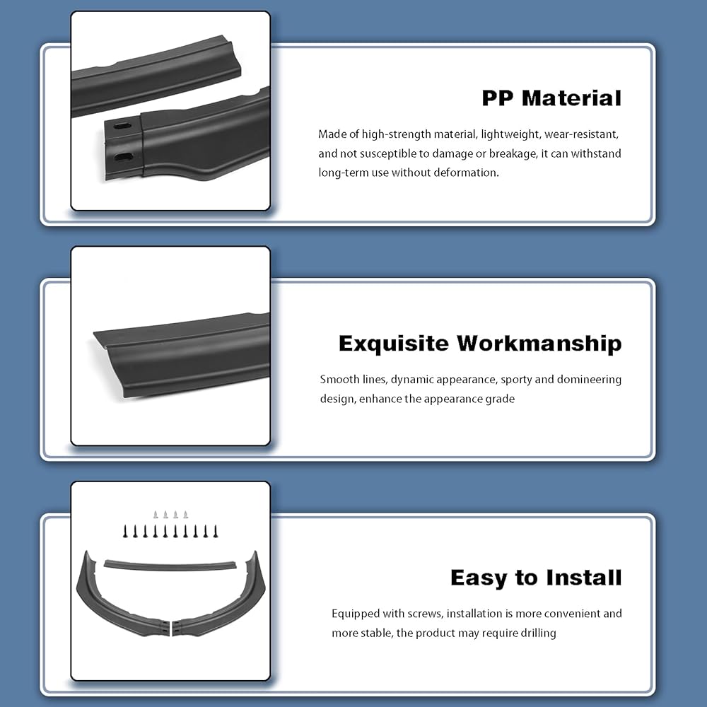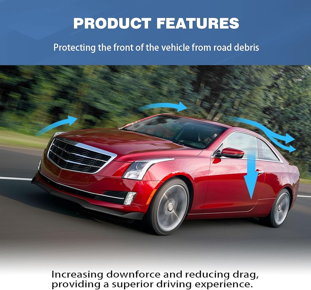 Optimized Aerodynamics:The front splitter can effectively protect your car from driveway scratches, speed bumps, and curbsides.The front bumper lip splitter rovides downforce to keep the body stable at high speeds. Designed in OEM style, this front spoiler enhances aerodynamic performance. By reducing adverse airflow during driving, it improves high-speed stability and increases downforce, delivering a more efficient and smooth driving experience