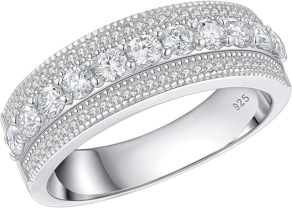 Product Specification: 71 round cut moissanite stone form 3 rows. Ring size 7 weight: 4.26g, 7mm width