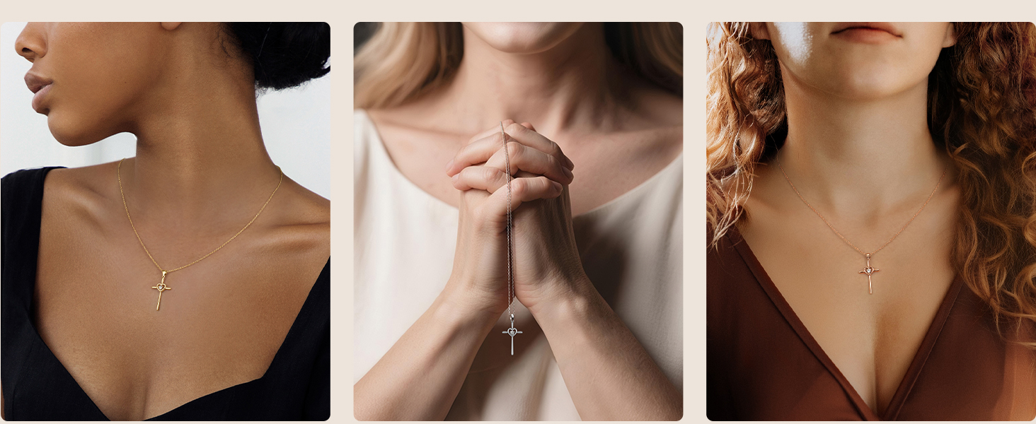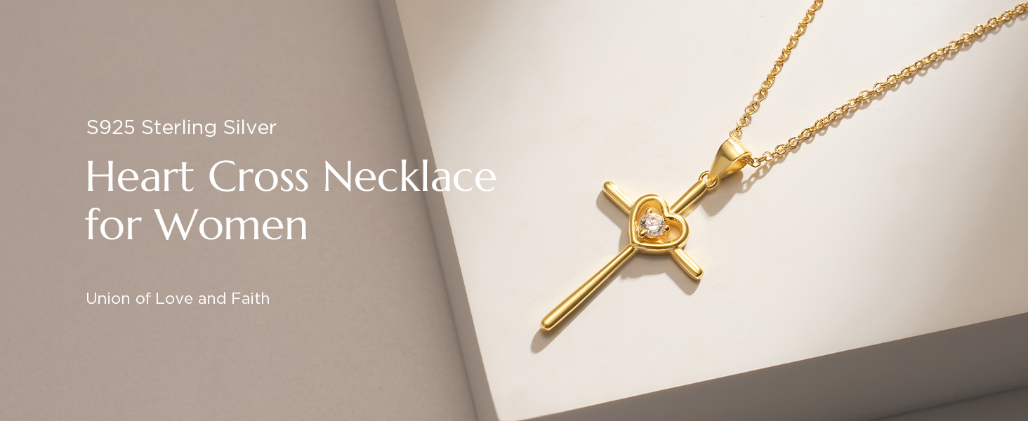 Love Made Sacred: Heart-topped cross with a glittering round CZ diamond center – where eternal love meets divine protection. Her blessing, your promise.