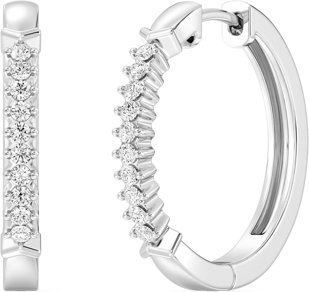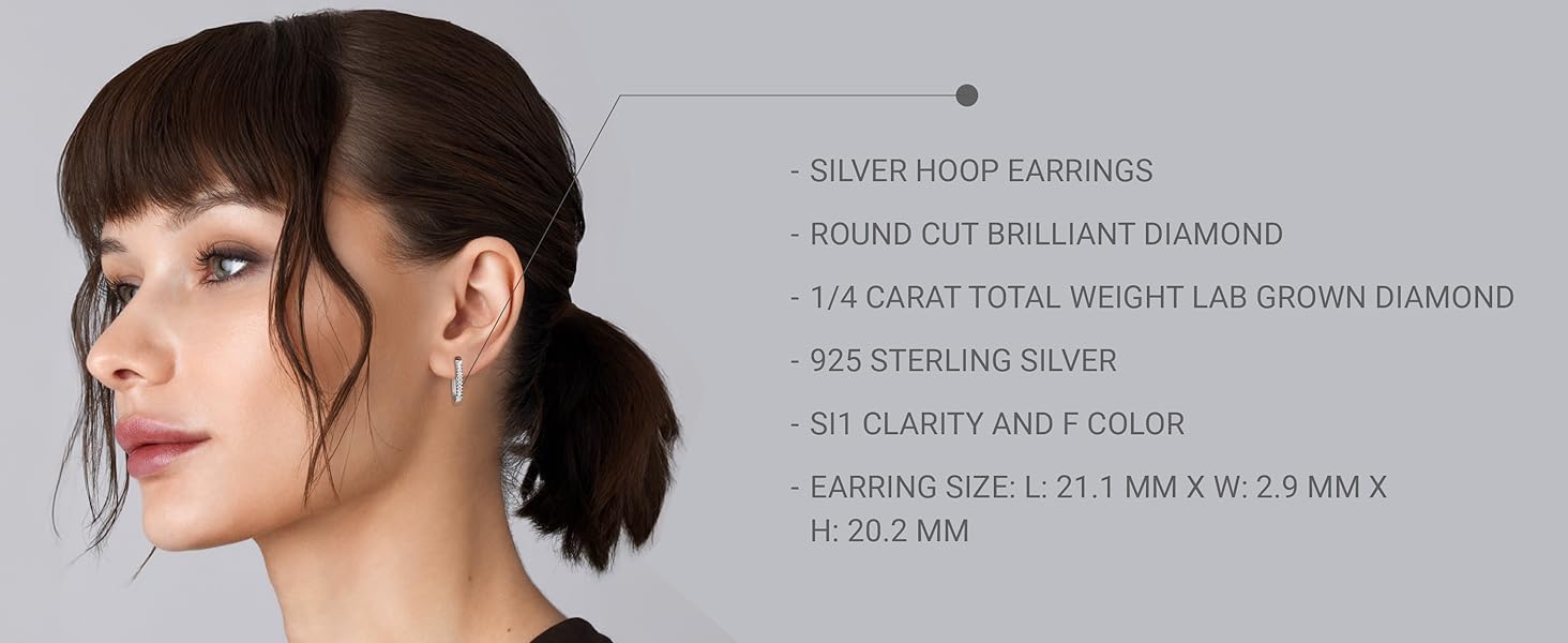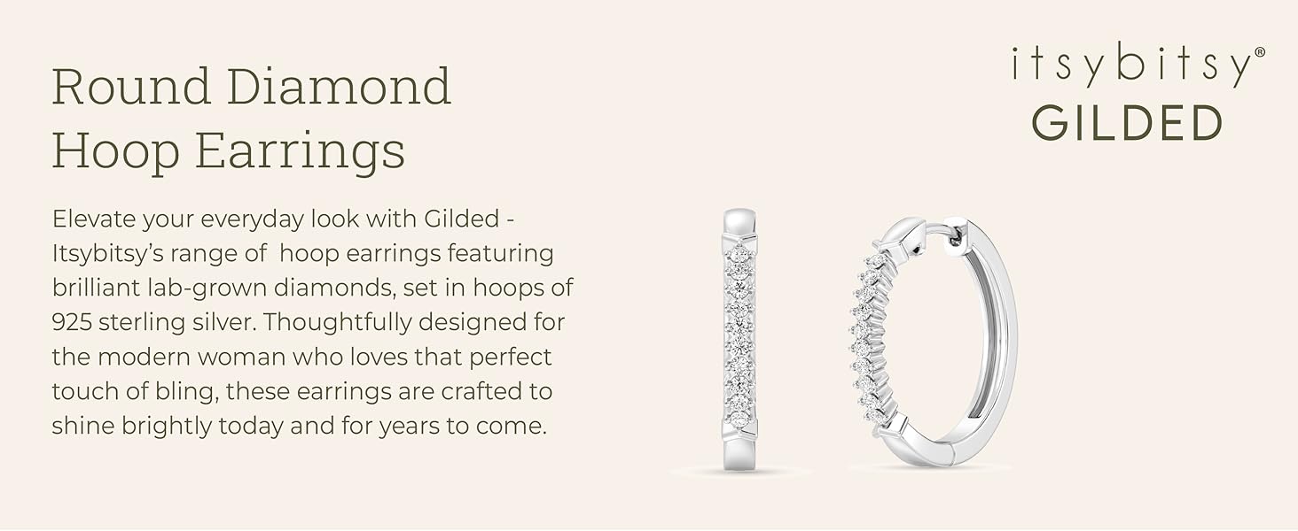 Clean, timeless, and effortlessly wearable, these Itsy Bitsy by Gilded diamond huggie hoop earrings are designed for everyday elegance. Crafted in polished sterling silver, each hoop features a refined row of prong-set lab-grown diamonds that deliver subtle brilliance without overpowering the minimalist silhouette. The hinged huggie design with a secure click closure ensures a comfortable, close-to-the-ear fit—perfect for daily wear, layering with studs, or stacking with other hoops. Featuring SI1 clarity, F-color lab-grown diamonds, these earrings offer the beauty of fine diamonds with an ethical, modern approach. Lightweight, versatile, and endlessly wearable, this pair is a staple piece for any fine jewelry collection.