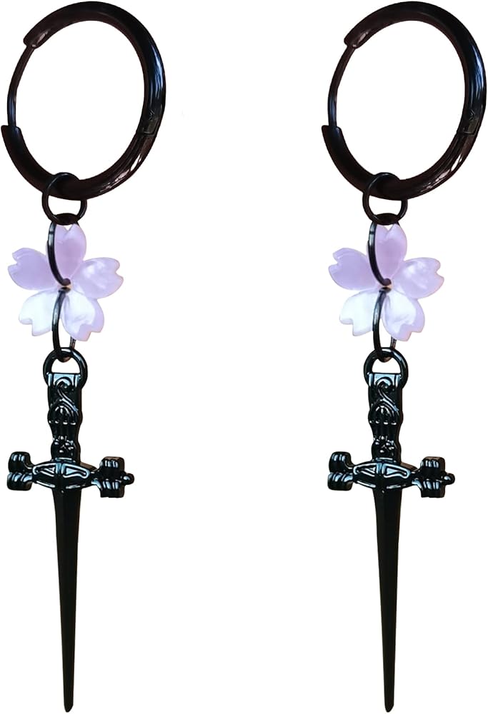 Design: The unique design of the cross sword dagger earrings perfectly combines with cherry blossoms, and the Gothic and punk fashion styles complement each other, making them both unique and fashionable