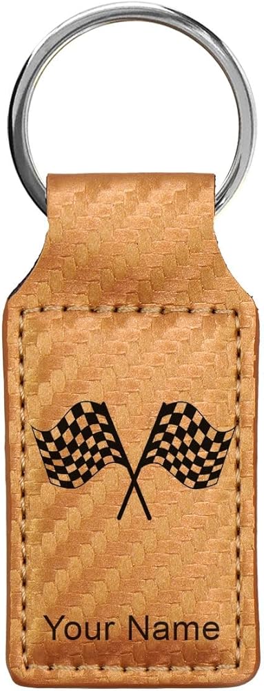 Racing Flags Design: Features an engraved image of racing flags, ideal for motorsports enthusiasts.