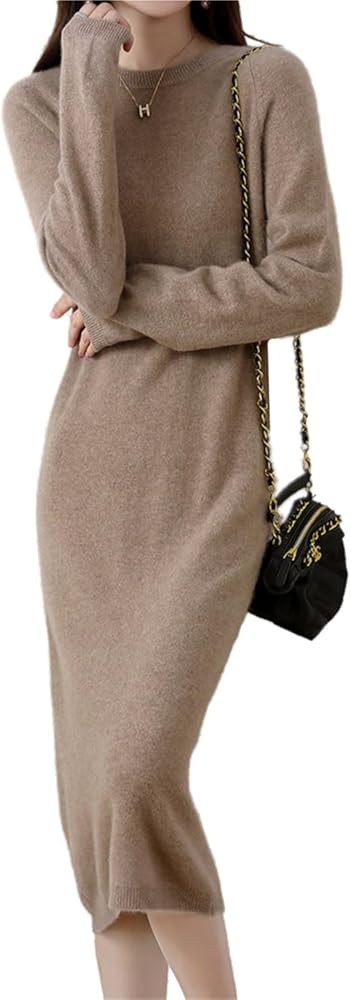 Sweater Dress Women's 100% Merino Wool O-Neck Long Raglan Sleeved Knitted Pullover Crewneck Tops in Kuwait