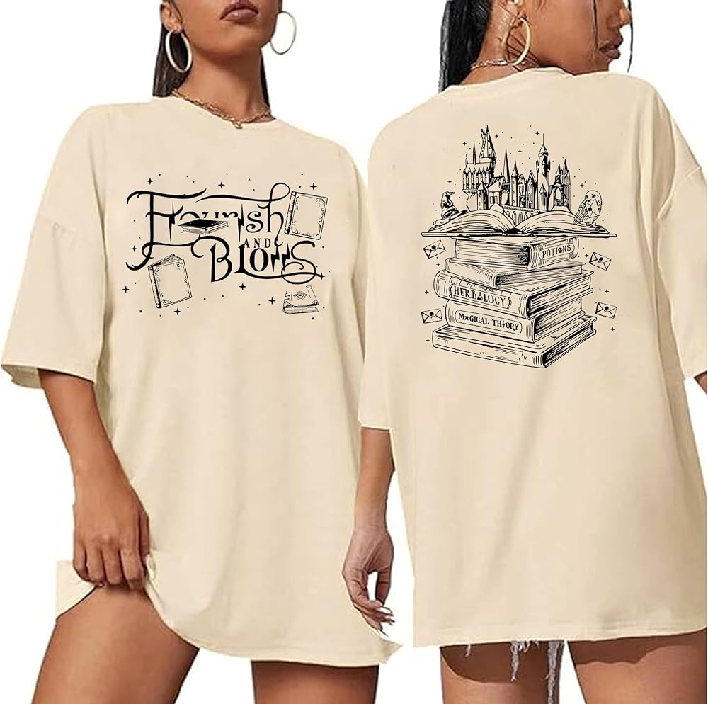 Favorite Fan Theme:This Book Tshirt Clothes Satisfies Your Love For The Theme Characters And Vividly Embodies The Crazy Fantasy Of The Wizarding World Flourish And Blotts Print,Book,Wizard,Round Neck,Short Sleeves,Relaxed Fit
