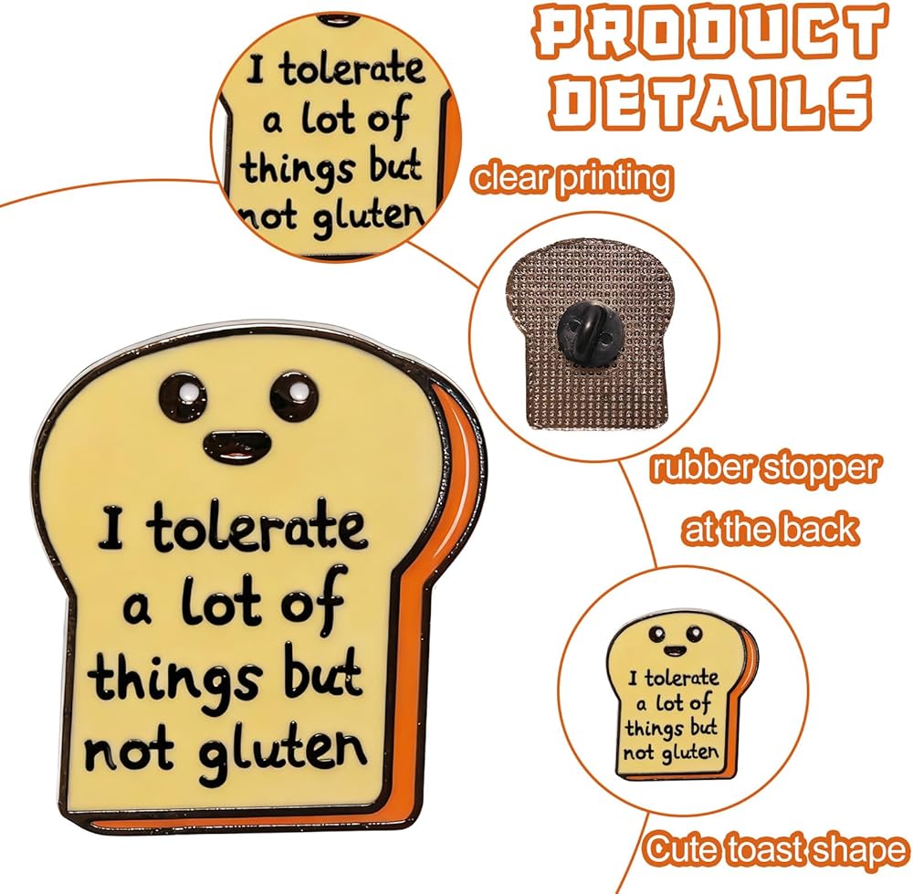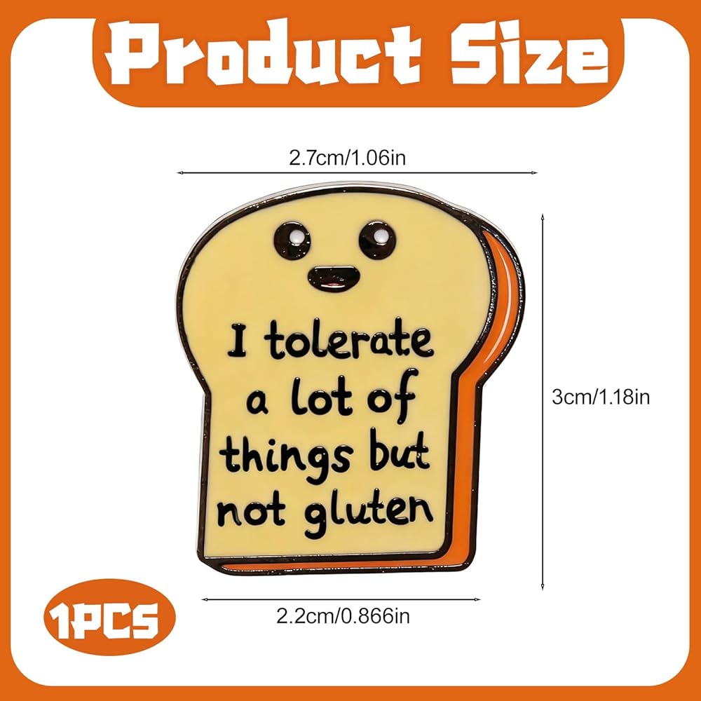 • Perfect Gift Idea for Her Him:This funny pins are ideal present for birthdays, holidays, or just because. Whether they're into cute pins for backpacks, lapel pins, or hat pins, this quirky accessory will make them smile.Great for gluten-free friends, foodies, or anyone who loves witty humor,funny enamel is ready for gifting