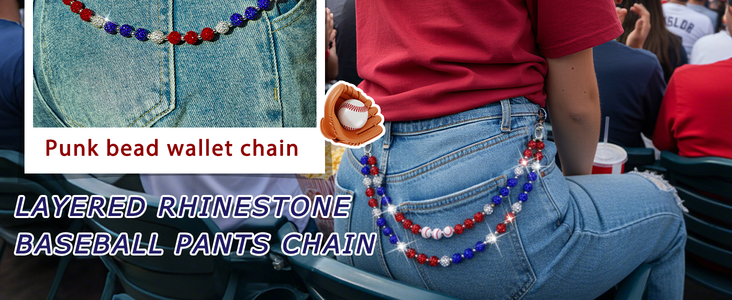 Design:Enhance your style with our baseball pants chain, combining punk-inspired aesthetics and sporty elements, featuring layered rhinestone beads for visual appeal, designed to attract attention and initiate conversations.