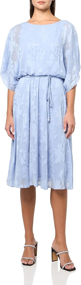 This Jessica Howard Women's Dresses Dress is a Boat Neck Dolman Sleeve Clip Chiffon Spring Midi Dress