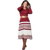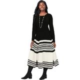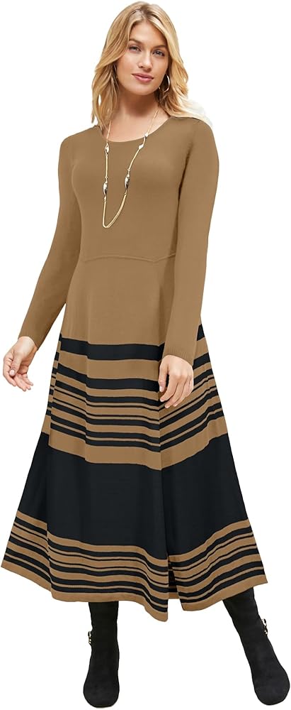 Feminine and flirty knit dress with a flared skirt makes for a sleek, chic look. Mini slits add movement. Finish your look with ankle booties. Fit & flare silhouette br> U-neckline br> Long sleeves br> Waist seam br> Hankie hem with 4 small peekaboo slits br> 46" length br> Viscose/Nylon br> Machine wash; Imported