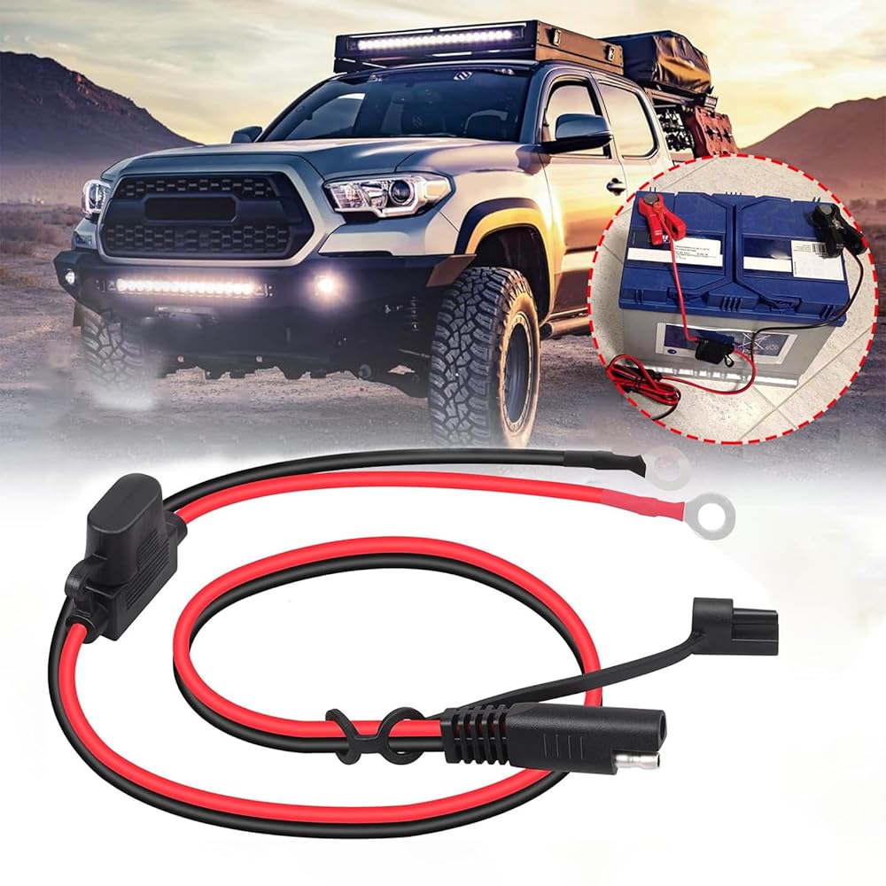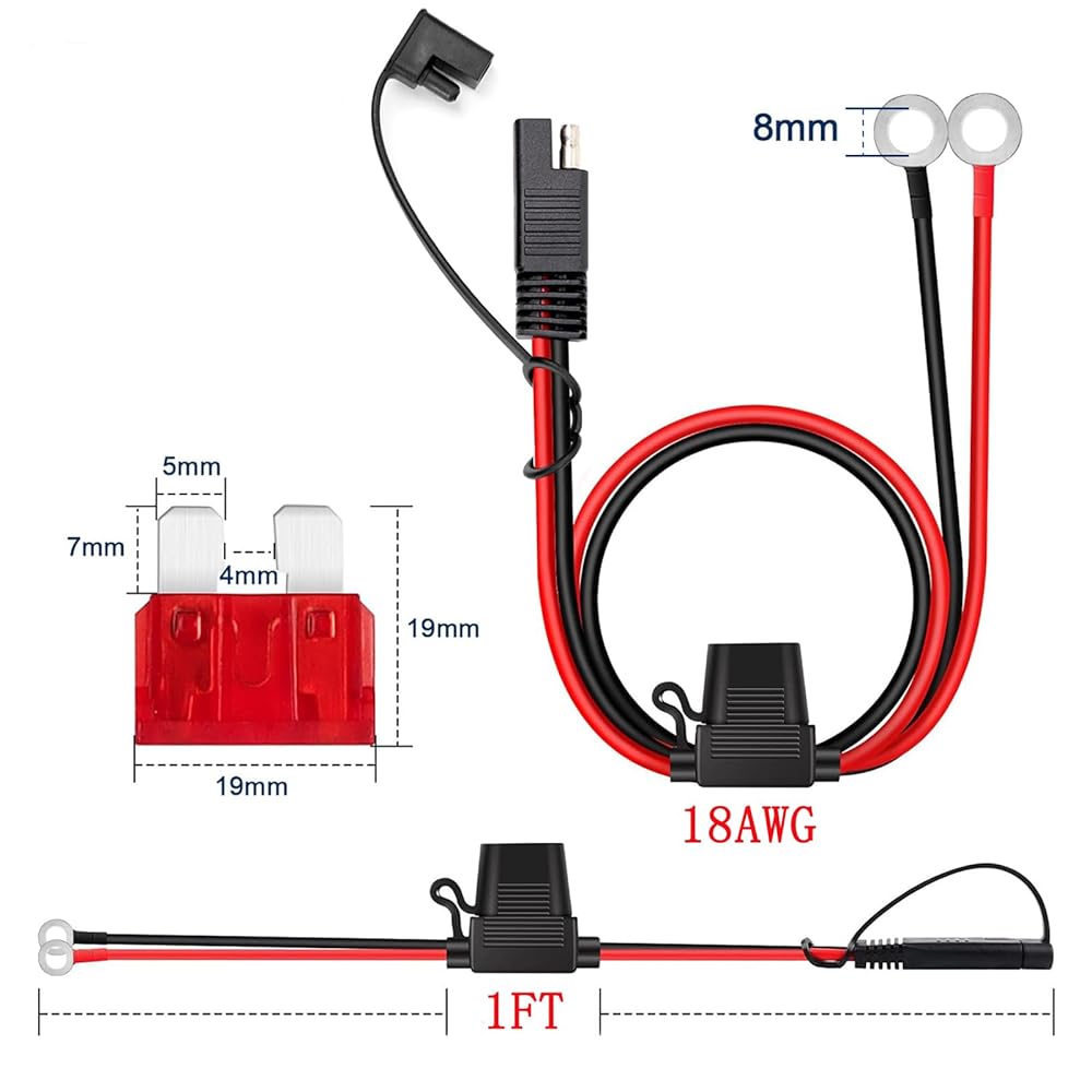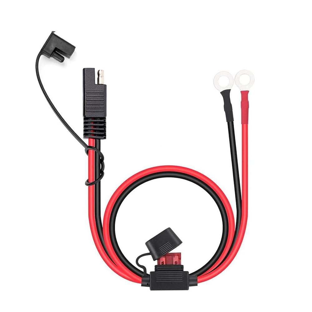 2FT 18AWG Extension Cable ,SAE to O Ring Terminal Harness with 15A Fuse, 2-Pin Quick Disconnect Plug, for Motorcycle, Car Battery Charger/Maintainer (12V, 60CM)