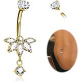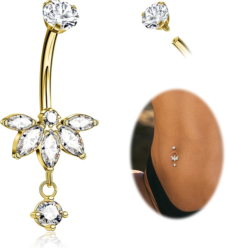 Elegant Lotus Design: Features a stunning dangle lotus element, adding a touch of boho-chic charm to your belly piercing jewelry.