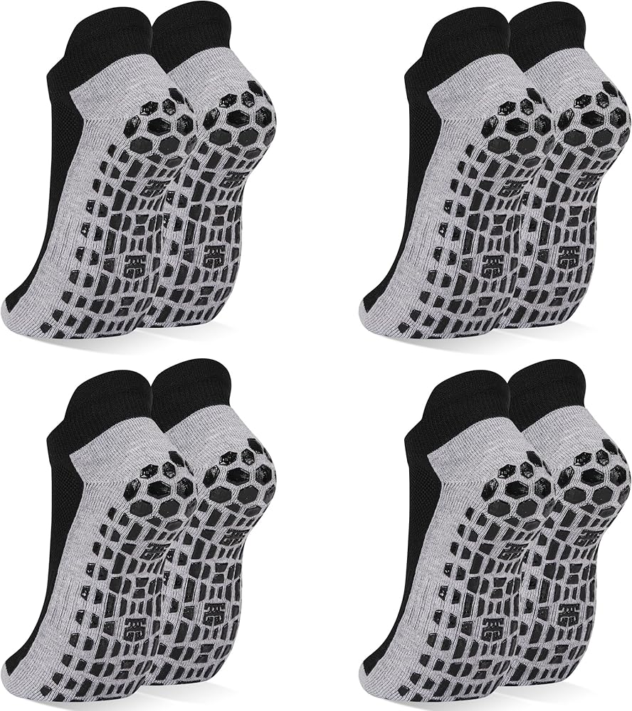 Thoughtful Design for Effortless Wear: These slipper socks with grips for men blend thoughtful design. Contoured heel shields tendons during workouts, elastic cuffs offer a snug fit without compression marks, mesh instep boosts breathability, reinforced toe prevents rubbing, and ergonomic arch support ensures a tailored fit.