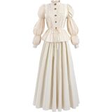 2 Piece Victorian Dress Set - The 1800s Edwardian Costume set contains a beige Edwaidian blouse and a vintage skirt. The suit saves you the trouble of matching. You can also try different combinations of this blouse or skirt with your other clothes.