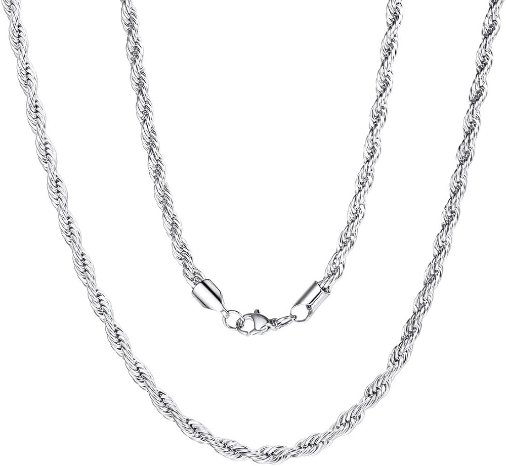 Friendly material: Our necklace for men is constructed from hypoallergenic 316L stainless steel,The smooth and rounded links of this rope chain necklace prevent irritation, providing a comfortable fit that you can wear the chain without any discomfort, making it good for daily use