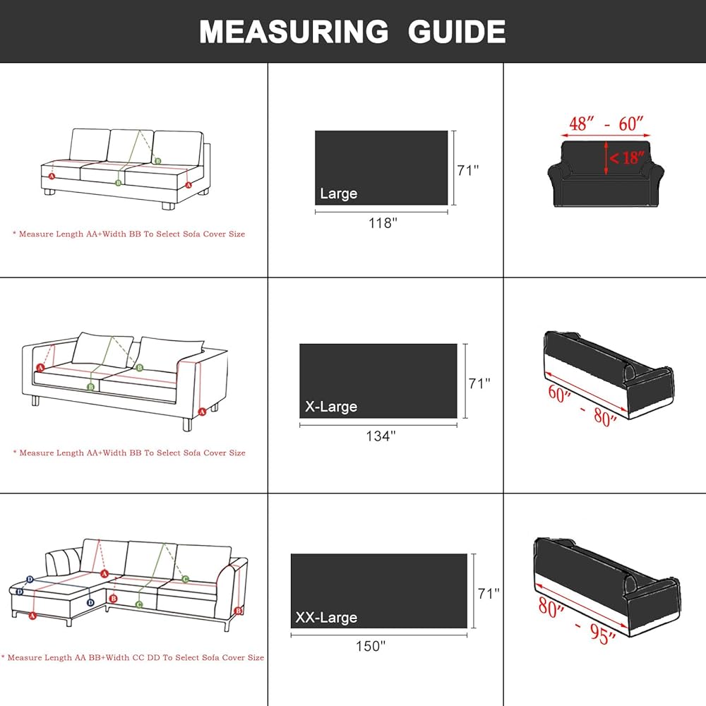 ღღ【X-LARGE SIZE】1piece -71x134 inches - suitable for the length of 60-80 inches of sofa (including armrest), such as loveseat recliner chair futon, 3 seat sofa, etc.sofa blanket size suitable for most sofa shapes (or some novel, strange furniture), please measure the size before purchase, see the measurement guide in the figure. Tip: L-shaped U-shaped or irregular sofa is recommended to buy 2-3 pieces of combination.