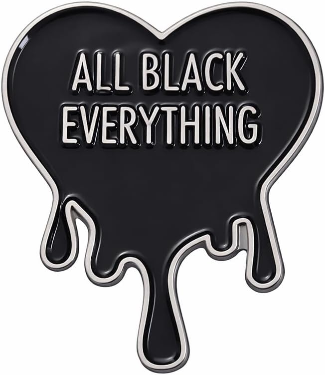 Emotional Quote Pin - Funny Enamel Pins Brooch with "ALL BLACK EVERYTHING" for Jackets,Backpacks,Hats. Gothic Melting Black Heart Brooches Gifts for Moody Fashion Lovers,Friends,Family.