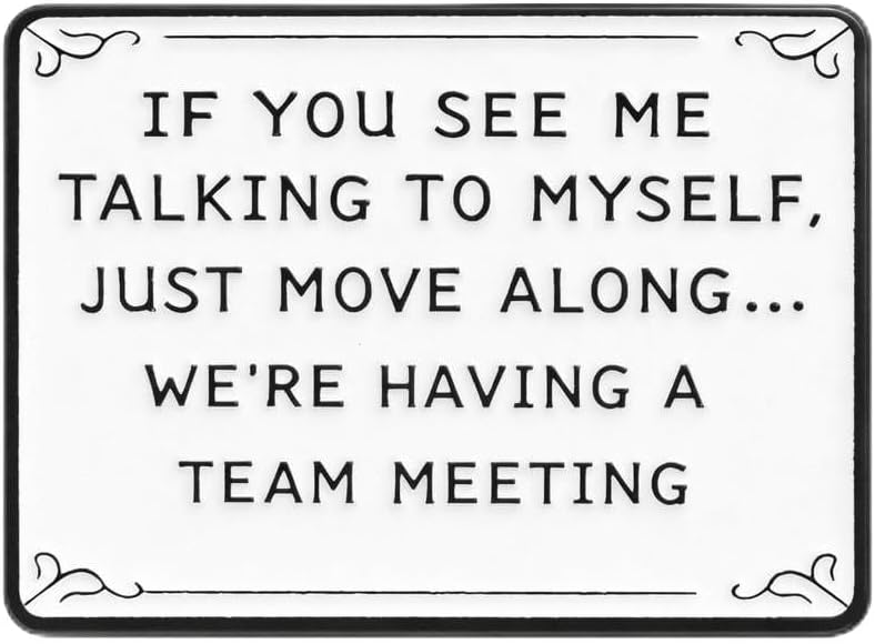 For every person whose mind is a chaotic boardroom of brilliant ideas, half-finished thoughts, and sarcastic commentary, this pin is your official name tag. We've turned the universally awkward moment of being caught talking to yourself into a cool badge of honor. No, you're not losing it. You're simply in a "team meeting," leading a high-stakes discussion with the most creative, critical, and chaotic team you know: you. This funny brooch is your Exquisite, silent explanation. This pin is a cool statement piece for the tribe of introverts, overthinkers, and masters of sarcasm. It's the ultimate witty gift for that friend who understands, that coworker who needs a laugh, or a personal treat to celebrate your own wonderful weirdness. Pin it on your jacket for your next coffee run, attach it to your work backpack as a subtle warning, or add it to your pinboard collection. It's a stylish way to tell the world: "Please do not disturb. The meeting is in session."