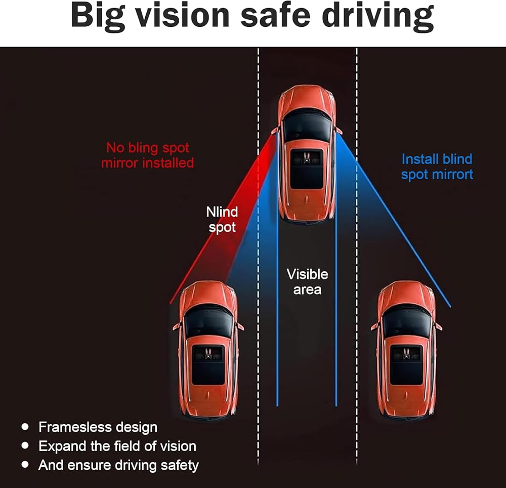 Function: This blind spot mirror adopts fan-shaped borderless design, which can greatly expand the field of view of the rearview mirror, clearly cover the side and rear blind spot that cannot be seen by the original mirror, and it is safer to change lanes and back up the car.