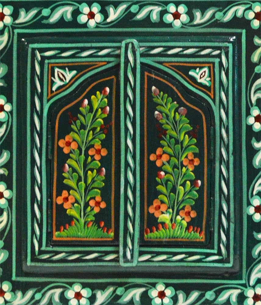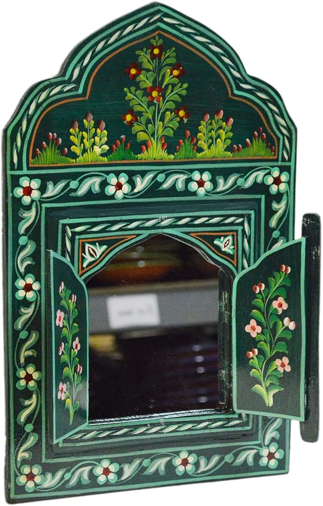 These unique and beautiful Moroccan Hand Painted Wall Mirrors, are a perfect accent piece to any room in your home. The ARABESQUE style ( ornamental design of intertwined flowing lines originally found in Arabic and Moorish decoration) is both an artistic and colorful addition to your wall decor. The wood doors can be displayed opened or closed. Note: Color discrepancies may occur between this product and your computer screen. The handcrafted touch of artisan skill creates variations in color, size and design. If buying two of the same item, slight differences should be expected.