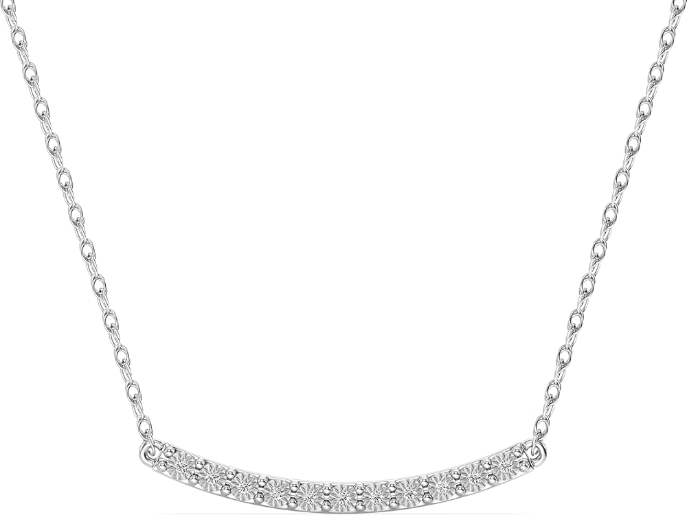 This elegant diamond station necklace features brilliant 12-facet round diamonds, expertly crafted to reflect more light and deliver exceptional sparkle. Designed in polished sterling silver, the necklace has a refined station-style layout with a 43mm diamond-accented front section for a modern, delicate look. The chain is fully adjustable at 16, 17, and 18 inches, allowing versatile styling for layering or standalone wear. Finished with a secure spring-ring clasp, this necklace is perfect for everyday elegance, special occasions, or gifting someone you love.