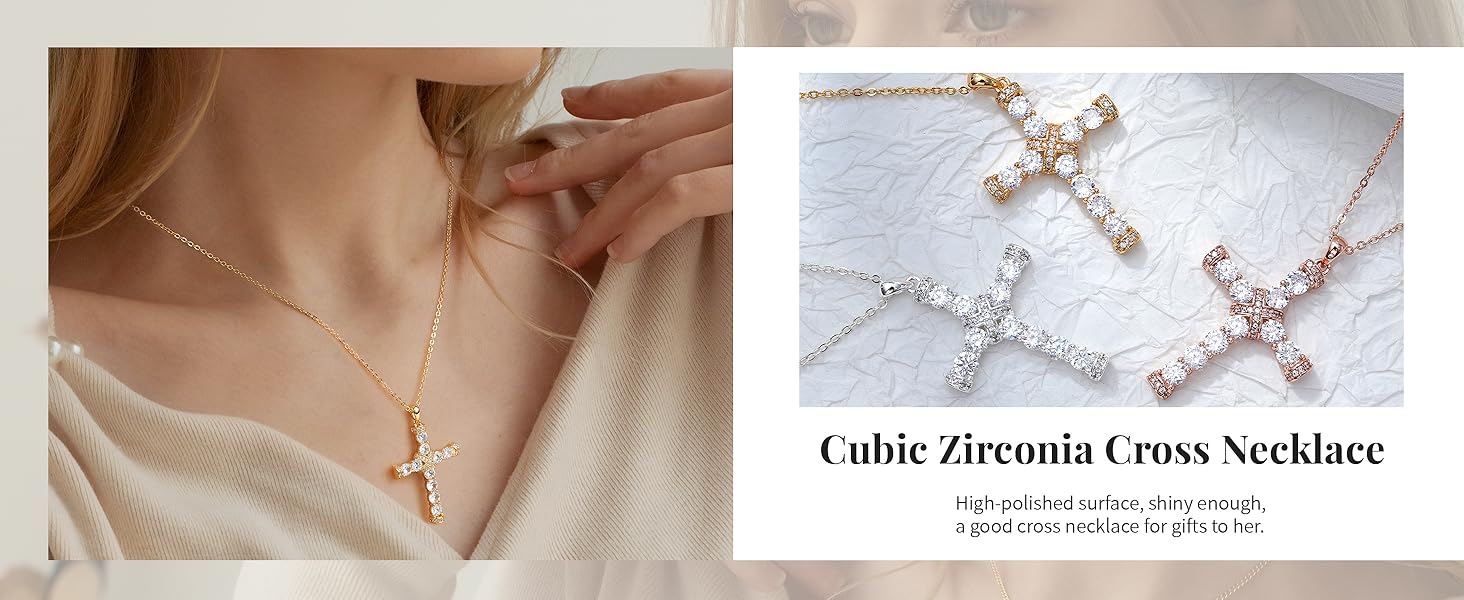 High-Quality Material: The diamond cross necklace silver has white gold plated over high-quality copper to keep color lasting a long time without tarnish, nickel-free, lead-free, and hypoallergenic. Manual quality inspection, the chain is not easy to break