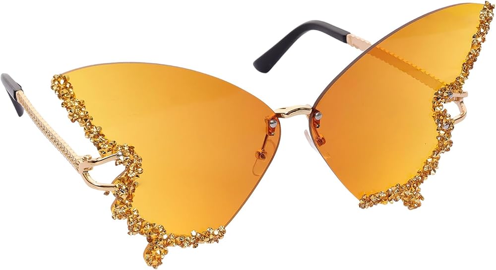 Sparkling Butterfly Fashion Design: Elegant purple butterfly shaped rimless sunglasses featuring a delicate crystal rhinestone trim along the lens edges; the shimmering decorative detail adds a glamorous and eye catching touch, making these stylish women's sunglasses perfect for summer outfits, beach vacations, parties, festivals and fashion street looks