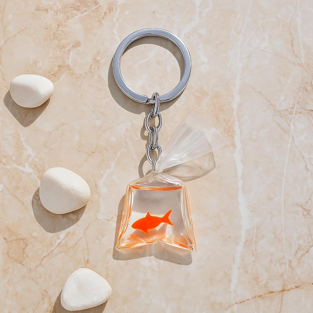 Unleash a wave of undeniable cuteness and whimsical charm with our Whimsical Bagged Goldfish keychain, a truly unique accessory designed to brighten your day. This captivating keychain perfectly replicates the playful sight of a little orange goldfish suspended within a clear, pouch-like enclosure, just like a treasured carnival prize or a new pet. With its vivid details and charmingly authentic simulation, it brings a delightful sense of childlike wonder and a burst of vibrant color to your daily routine, making it an instant conversation starter and a source of constant delight. Beyond its primary function of securely holding your keys, this adorable goldfish keychain truly shines as a distinctive Bag Charm for Women. Effortlessly clip it onto your favourite handbag, school backpack, or even a travel tote to instantly infuse your look with personality, charm, and a touch of playful eccentricity. It makes a wonderfully unique and thoughtful gift for animal lovers, friends who appreciate quirky and cute aesthetics, or anyone who enjoys injecting a bit of fun into their accessories. Give the gift of originality and pure joy, allowing them to carry a piece of adorable, aquatic charm wherever they go.