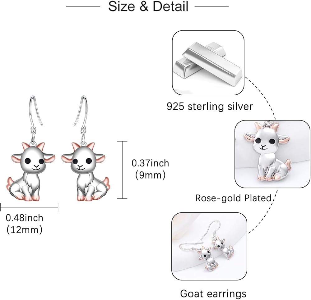 Hypoallergenic Materials: The goat dangle earrings are made of 925 sterling silver with rose gold-plating,no nickel, no lead, cadmium free, comfortable to wear for sensitive ears.