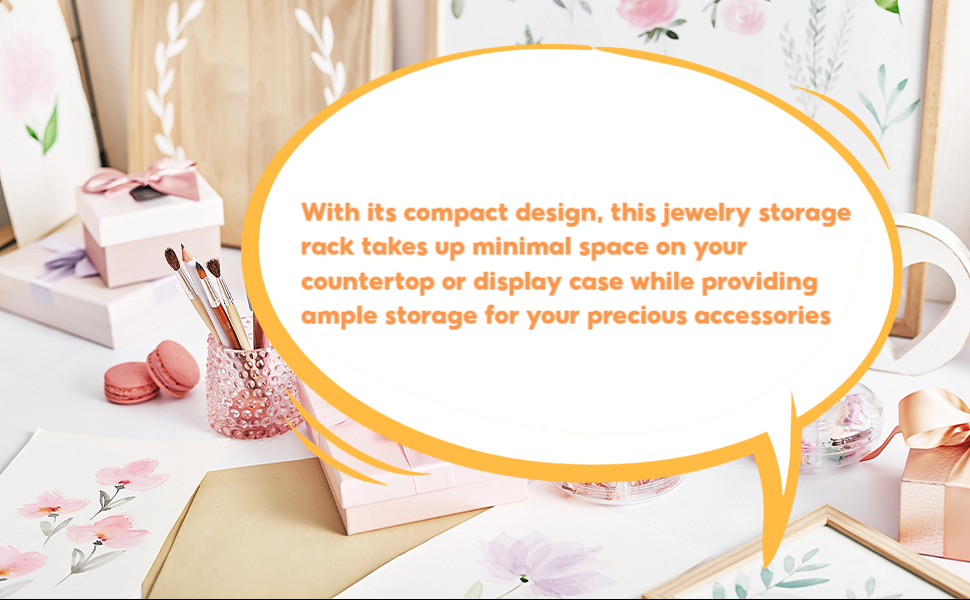 【Space Saving Storage Solution】: With its compact design, this jewelry storage rack takes up minimal space on your countertop or display case while providing ample storage for your precious accessories