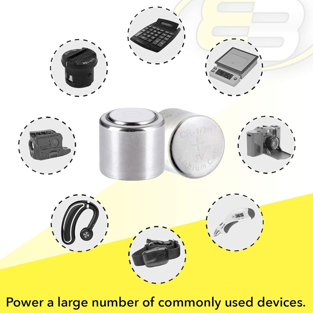 Whether you're looking for replacement batteries for your smartwatch, dog collar, camera, or other electronic devices, the Exell CR1/3N 3-Volt Lithium Battery provides the power and energy you need. Made from lithium-ion technology, these batteries boast an output voltage of 3V and a shelf life of 10+ years. Because of their longer shelf life and high-power output, these batteries are a great addition to electronic storage and emergency supplies. They're perfect for household electronics, including remote controls, personal medical devices, and more. This battery is a high-powered battery cell that can be used as an effective replacement for a stack of 2 LR44 cells. With a shelf life of 10+ years, these powerful lithium batteries are a great alternative to low-powered batteries. Dead batteries and drained electronics can be frustrating or life-threatening. It's important to have replacement batteries close by, especially when you rely on a device like a glucometer, emergency light, communication tool, or safety system. With the Exell CR1/3N 3-Volt Lithium Batteries, you won't have to worry about faulty construction or low-quality materials. These lithium batteries are made from high-quality materials and designed to last. Before ordering this battery backup pack, be sure to check that the product is compatible with the battery's chemistry, size, amperage, polarity, and voltage. With your order, you'll receive a 1-pack of the Exell CR1/3N lithium batteries?perfect for use in a wide variety of consumer electronics.