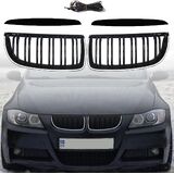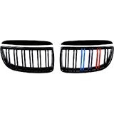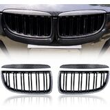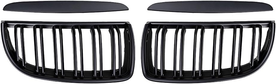 Glossy Black Dual Slats Grill Carbon Fiber Trim Kidney Grille Replacement for 2005-2008 BMW E90 E91 3-Series Pre-LCI Left Right in Kuwait