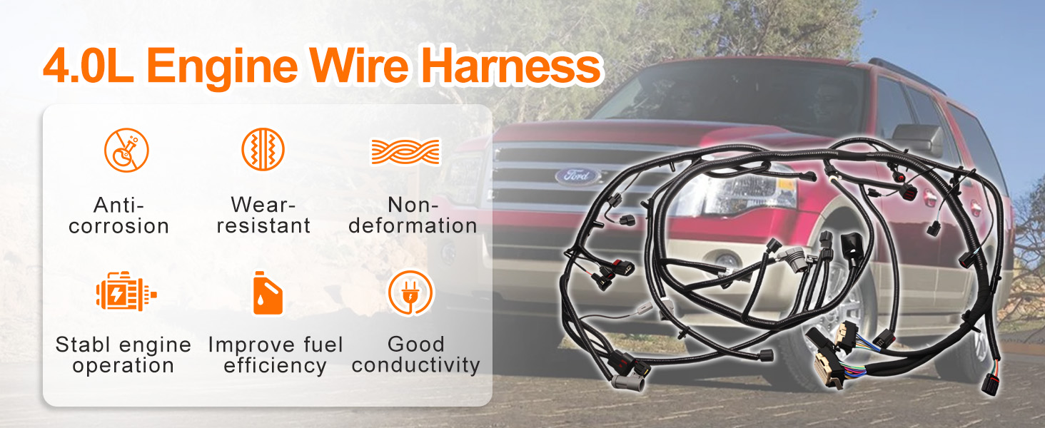 【Application Vehicle】The engine wire harness fits forFord Explorer Sport Trac, forFord Explorer, and forMercury Mountaineer 2008-2009 , all with 4.0L V6 engines, engineered for a precise fit to restore original performance.