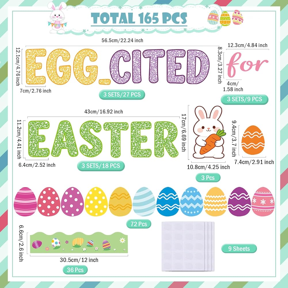 This Easter Egg bulletin board decoration set is sturdy, beautifully printed with vibrant colors, and makes a fun present for friends and family, you can give it to your loved ones to decorate your Easter party together, which is sure to bring you all joy