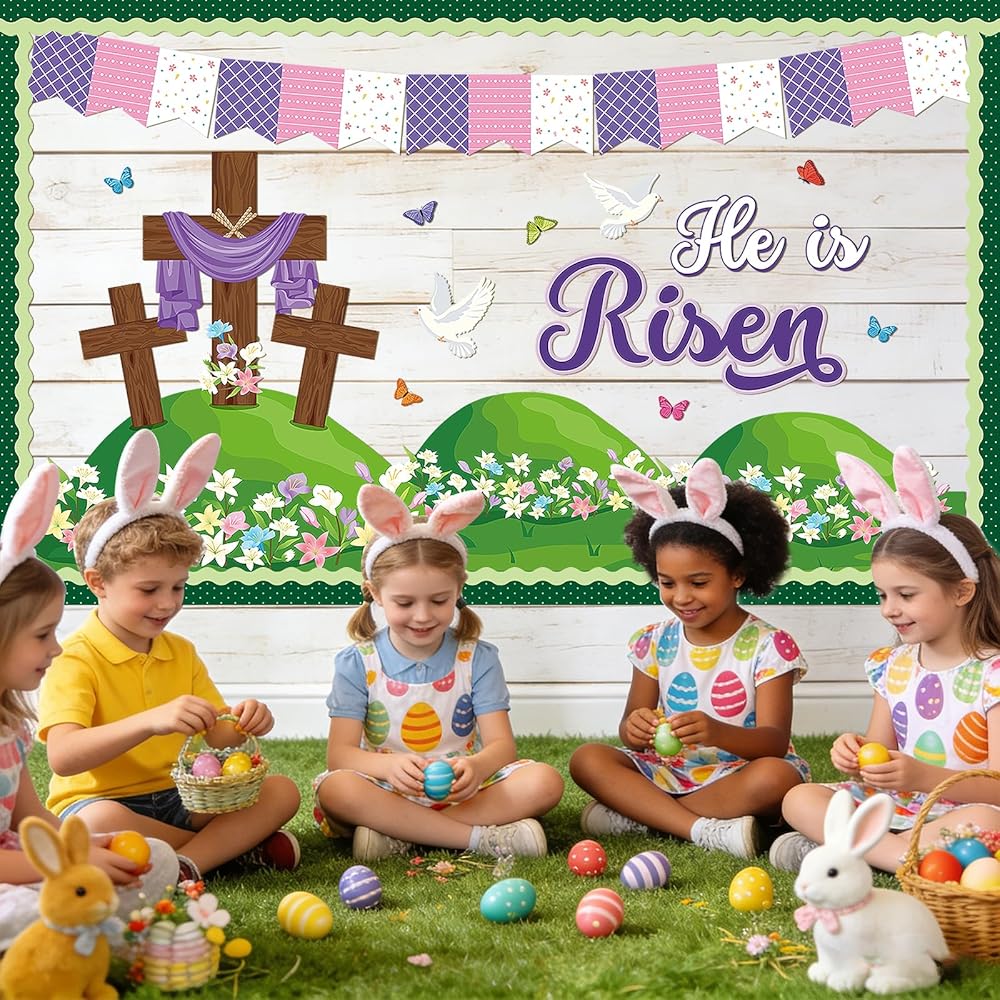 Wide Application: This Sunday school decorations for classroom is ideal for Easter themed decorations and can be used to decorate March party, spring celebrations, Easter party decorations, church events, Sunday school, and other holiday events. The religious Easter decor can be applied to church, door, table, wall, room, window, bookshelf, locker, library, classroom, school, blackboard, office, mirror and other places to create a festive atmosphere