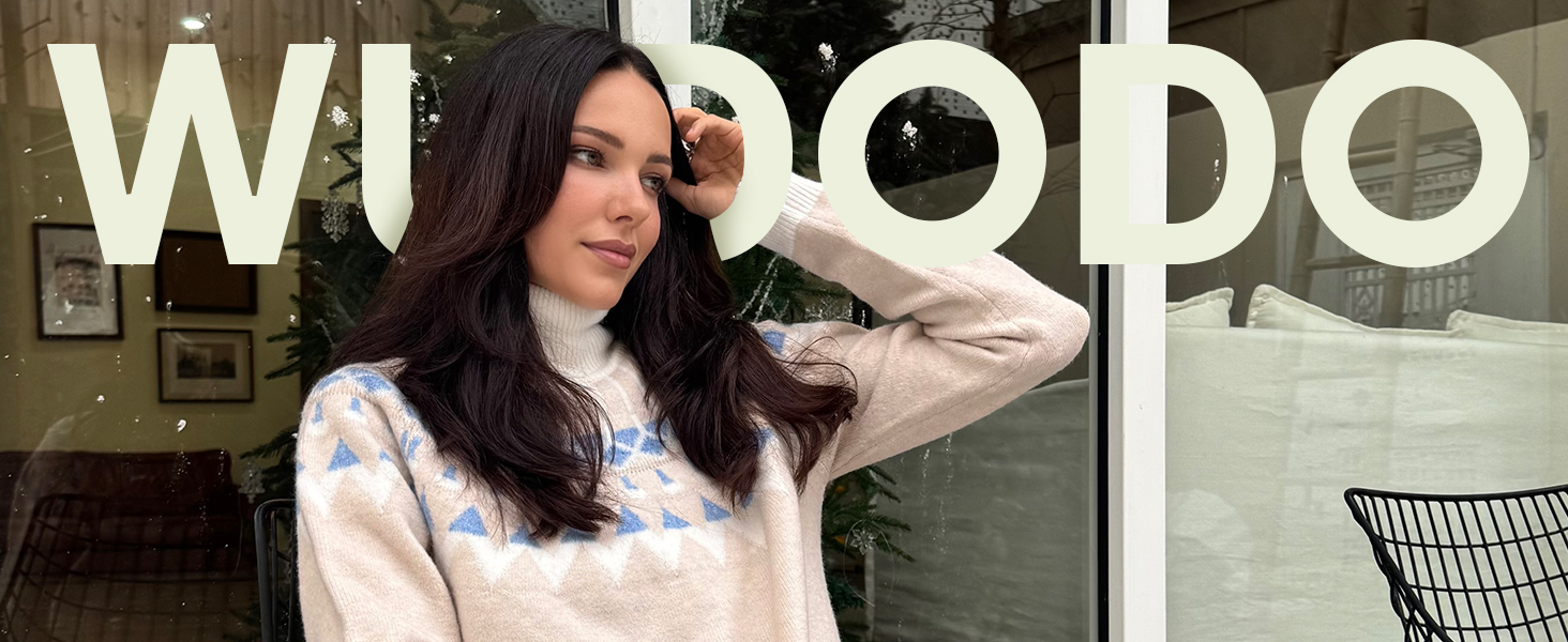 Features: WUDODO vintage pullover features a Turtleneck, raglan sleeves, Fair Isle style color block pattern. A cute loose oversized sweater for women fall and winter trendy.