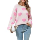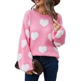 Heart Sweater for Women Valentine's Day Cute Print Oversized Long Sleeve Sweaters Knitted Pullover Tops