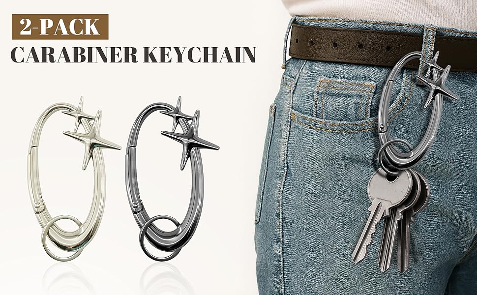 Size: 4 inches Upgrade your key storage, this set of two Y2K keychains features stylish silver and gunmetal grey carabiners that can be easily attached to bags, keys, or as a beautiful accessory. Compact and sturdy construction, perfect for organizing car keys, house keys, and small accessories.