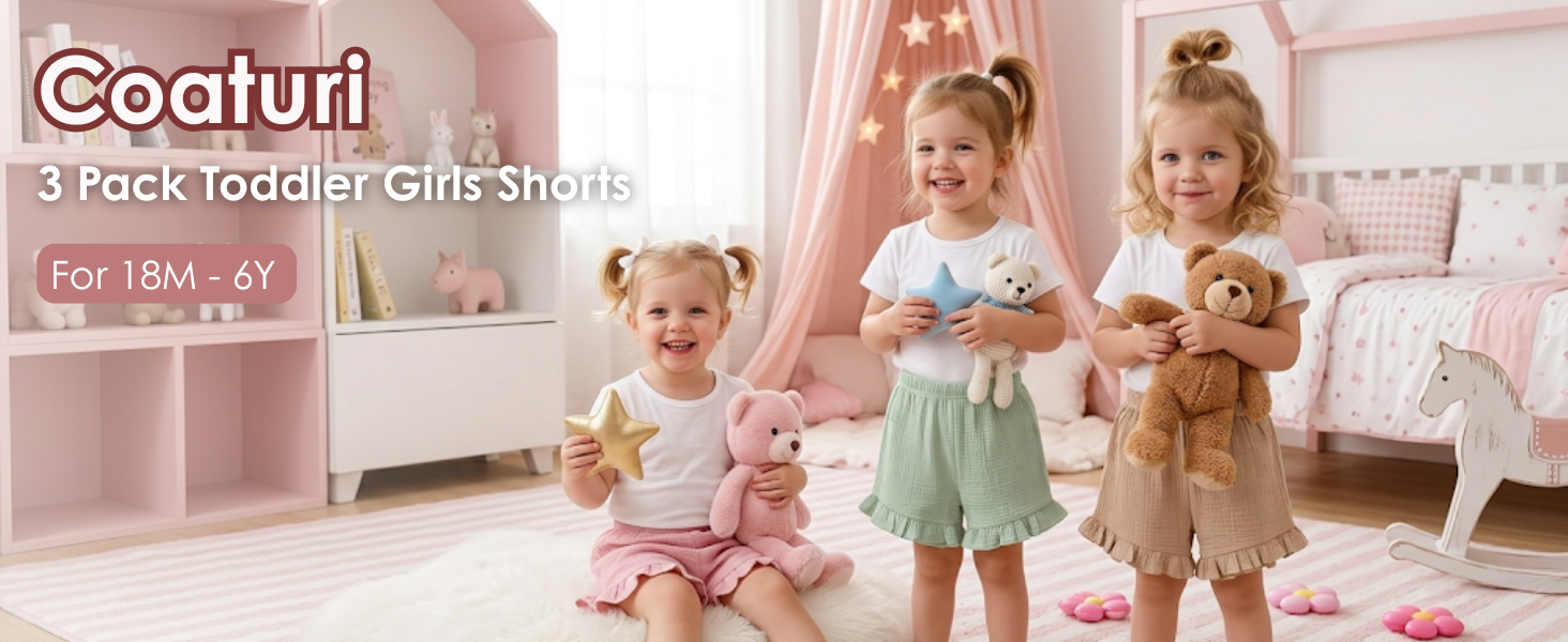 Versatile 3-Pack Essentials: Includes three shorts in mix-and-match colors to build her summer wardrobe. They pair effortlessly with all her favorite tees and tanks, offering endless outfit combinations for playdates, daycare, or casual outings.