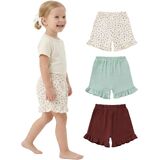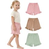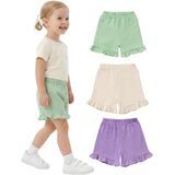 Chic & Comfortable Design: These toddler cotton shorts feature a high-rise elastic waistband for easy wear and a perfect fit. The playful ruffled hem adds charm, while the comfortable cut allows free movement during play.