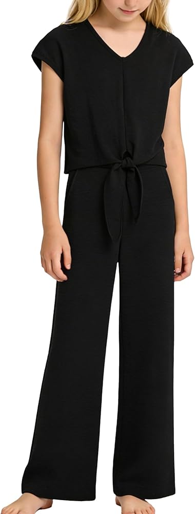 Chic Knot Top & Wide Pants Set:Features a stylish knot front short sleeve top, paired with flowy wide pants for a clean and elevated shape. These outfits for girls deliver a neat, formal-inspired look.