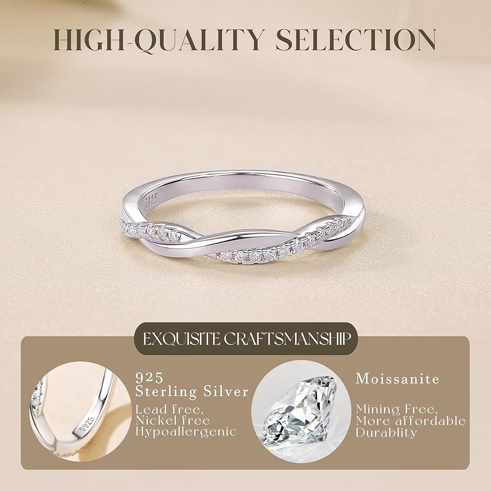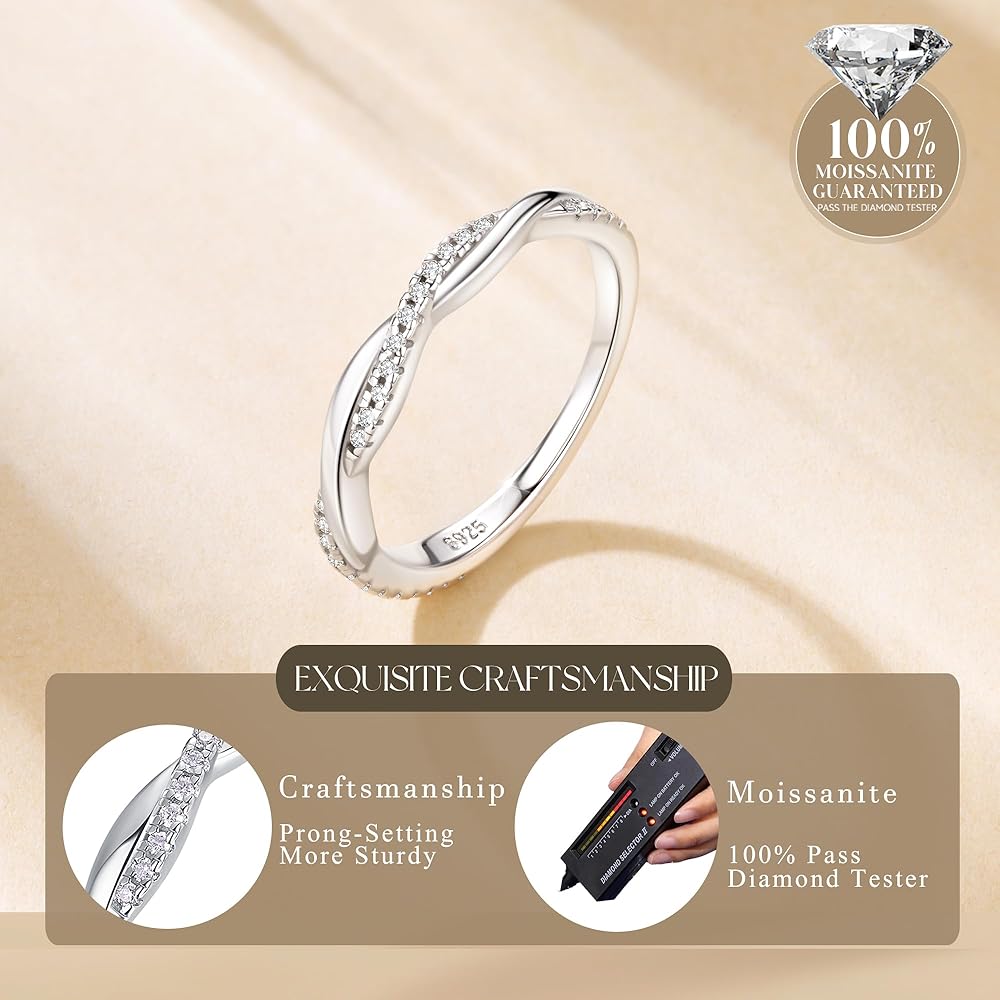 Twisted Vine Moissanite Wedding Band Ring, 3mm Width Eternity Promise Ring for Women, D Color VVS1 Moissanite Rings 925 Sterling Silver, Anniversary and Bridal Gift, All Size