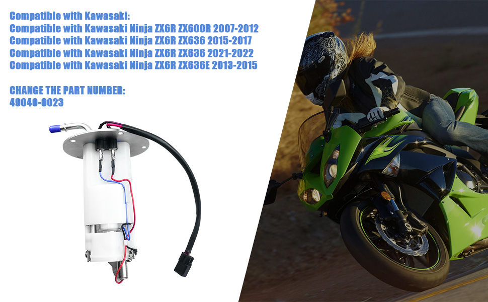 Compatibility: This 49040-0023 fuel pump assembly is fit for Kawasaki Ninja ZX6R ZX600R 2007-2012 / ZX636 2015-2017 / ZX636 2021-2022 / ZX636E 2013-2015
