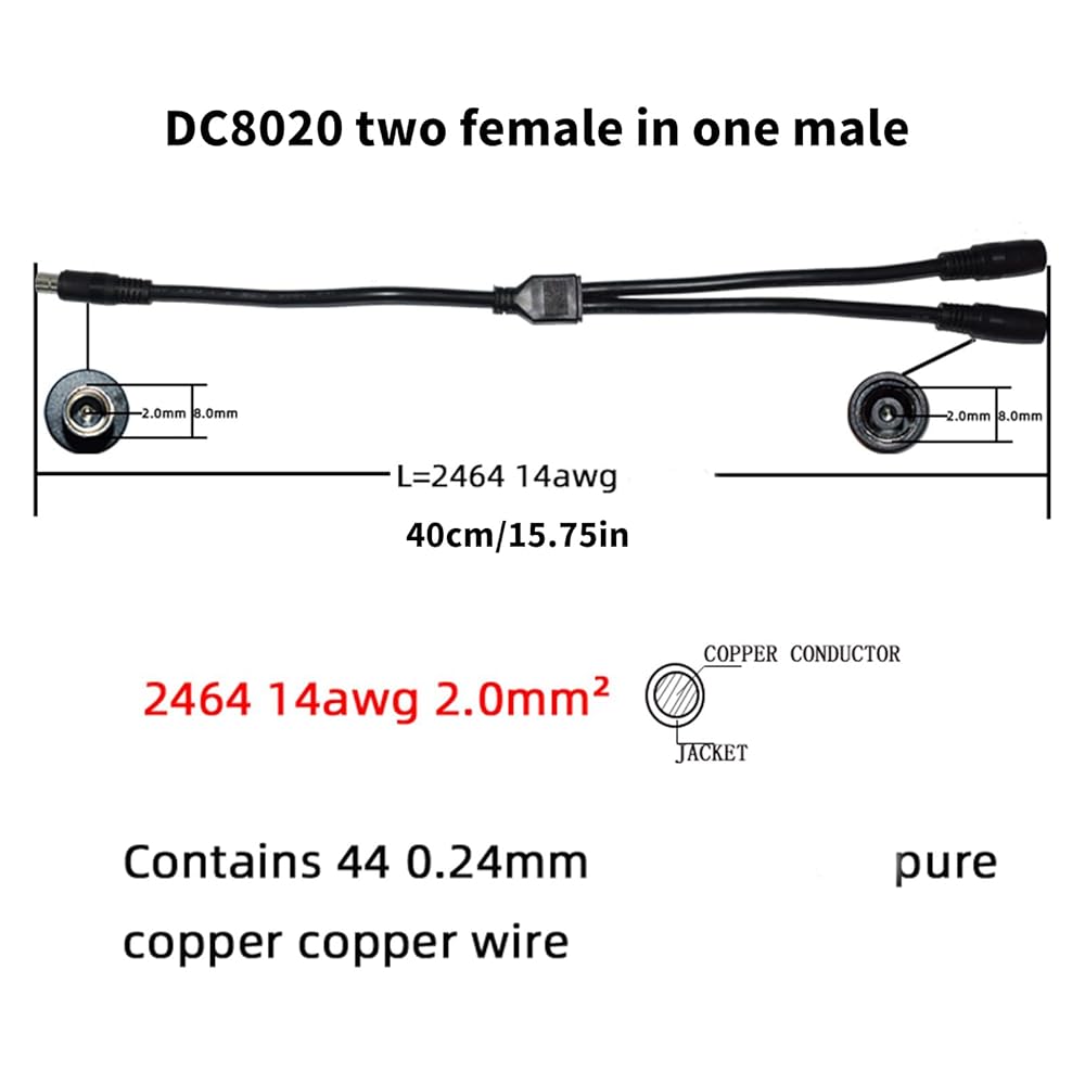DC8020 1 male to 2 female connectors power cord, approximately 40cm long.