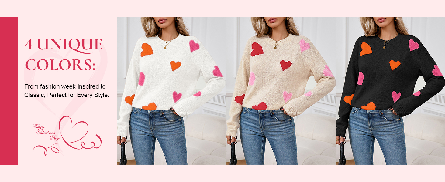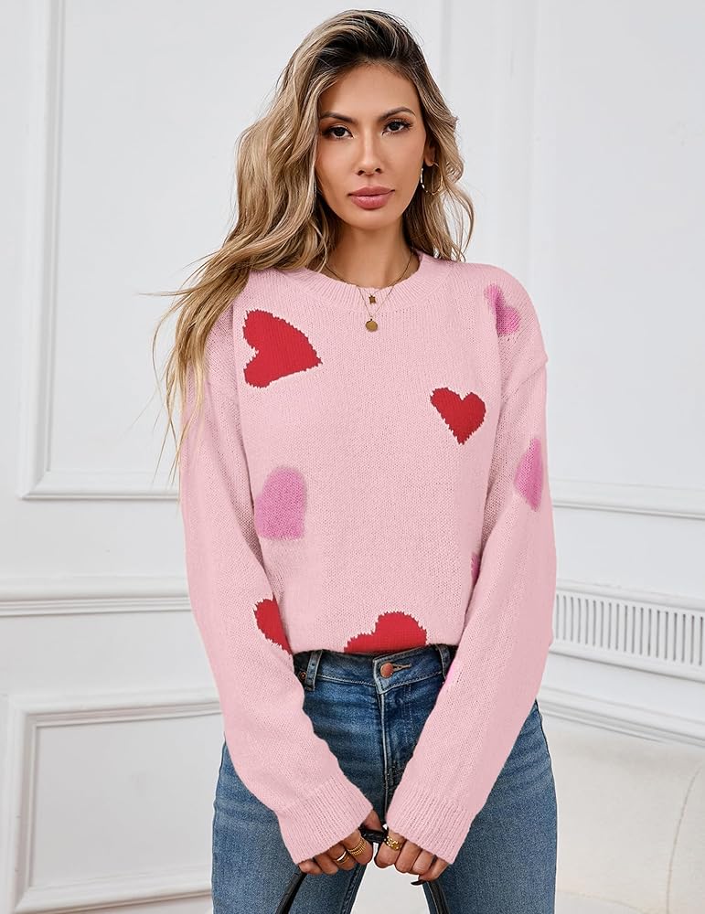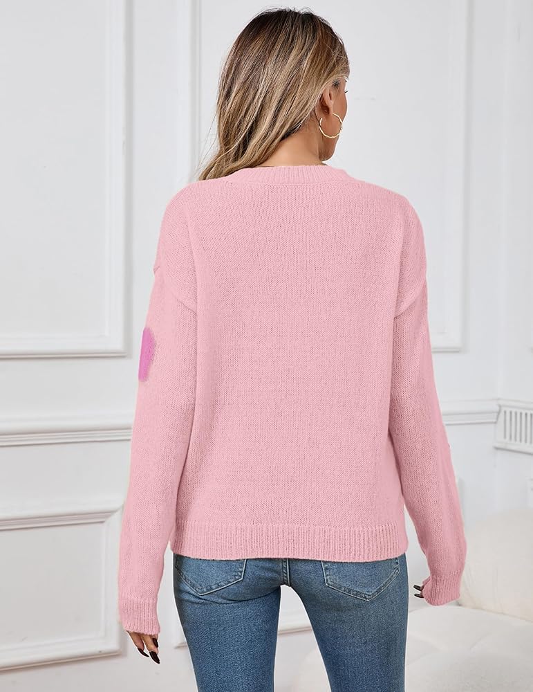 Versatile Style & Occasions: Ideal for casual outings, indoor cozy moments, or a sweet gift for Valentine's Day. The pink tones and heart design make this sweater perfect for spreading love and warmth during the romantic season.