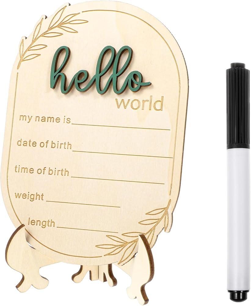 [What You Get] A versatile baby birth announcement sign measuring 5 x 10.5 x 0.3cm/6 x 4 x 0.1inch, a matching wooden base (9 x 10cm/3.5 x 3.9inches when assembled), and a 12cm/5inch pen for easy note-taking. It's a thoughtful choice, packed with information