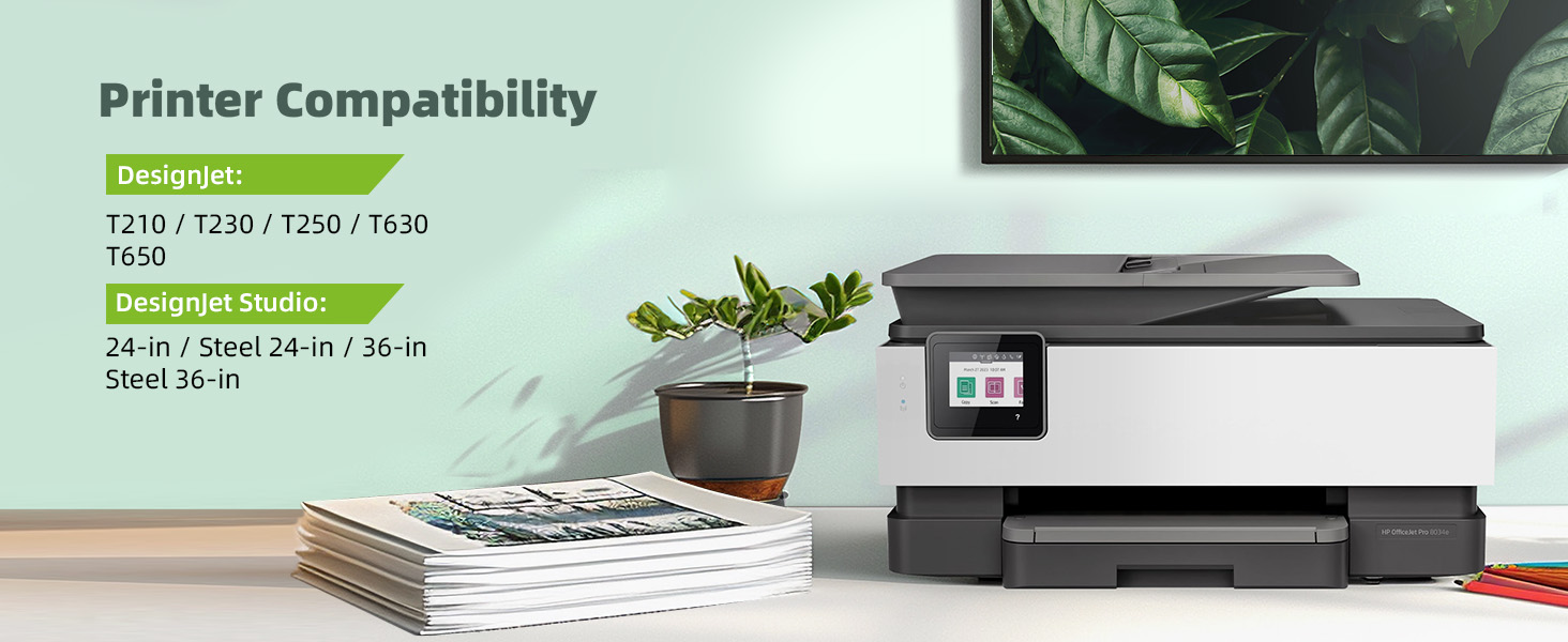 - Compatible Printers: Compatible with HP DesignJet: T210, T230, T250, T630, T650; DesignJet Studio: 24-in, Steel 24-in, 36-in, Steel 36-in Printer