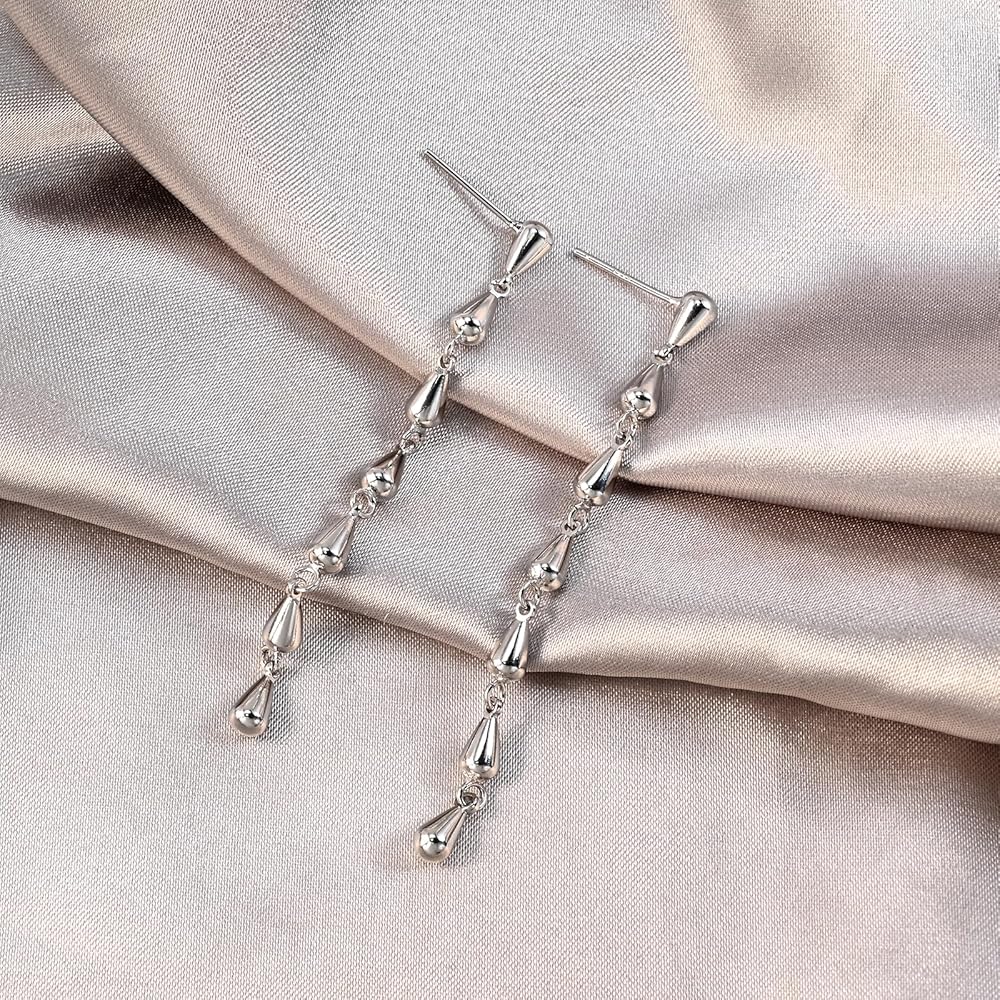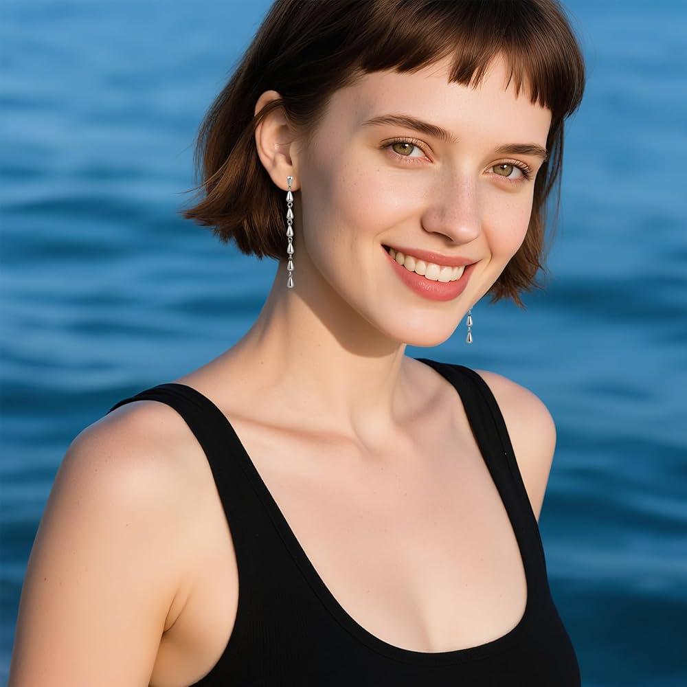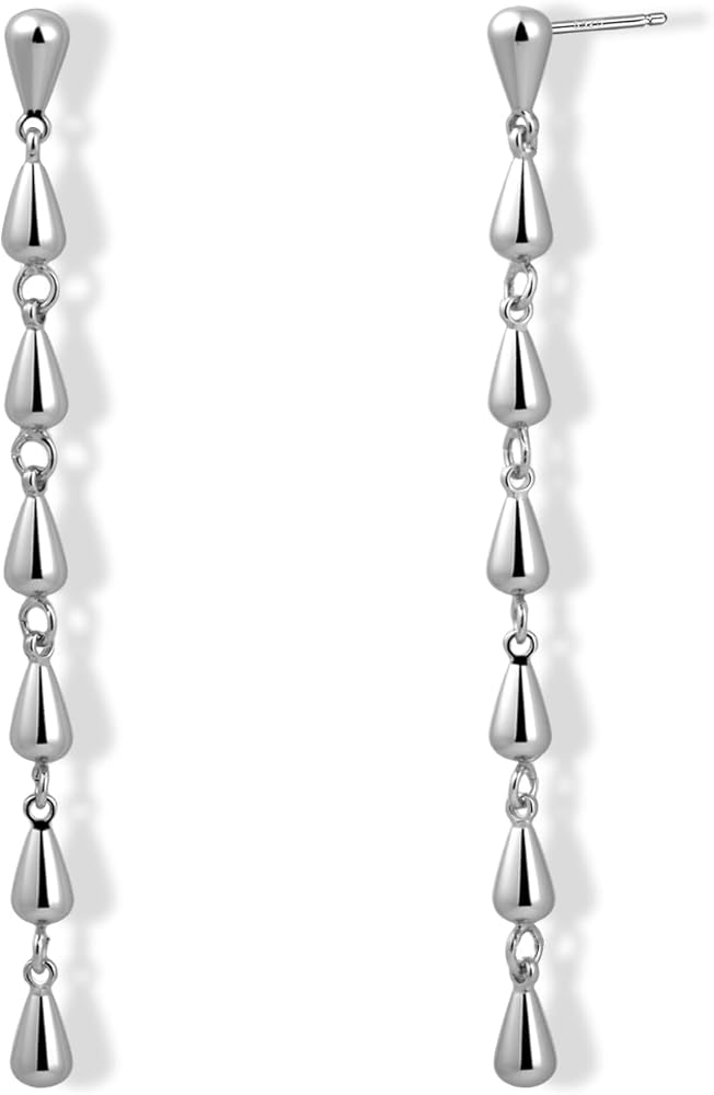 Minimalist Dangle Design: These dangle earrings for women are made up of multiple silver teardrops strung together, with long pendants that sway to create a unique sense of movement. Inspired by minimalist chain earrings, these bold long drop earrings for women are designed to complement your outfit