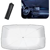 To use, simply prop the sunshade in front of your windshield and pull it down to secure it. When you're not using it, the parasol can be easily folded into the included storage bag, ensuring it doesn't take up unnecessary space in your car.