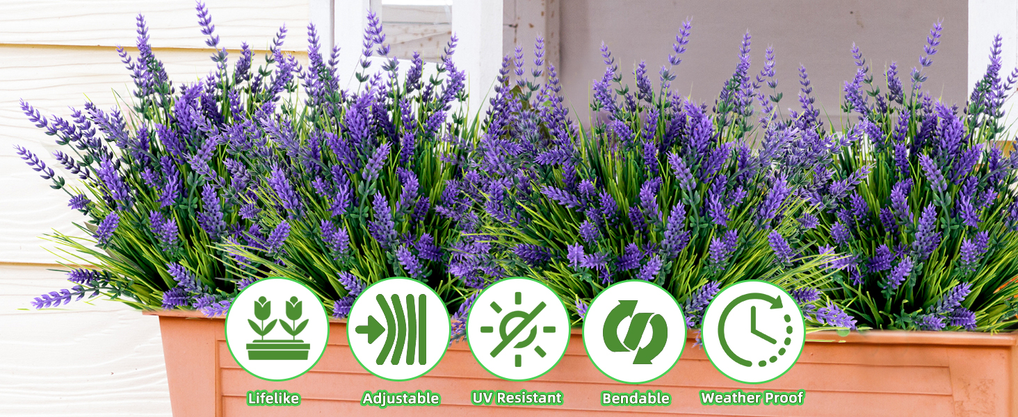 Realistic Appearance: The gradient fake lavender flower color created through exquisite craftsmanship complements the green grass, vividly restoring the appearance of the natural plant and bringing long-lasting freshness and beauty to your outdoor space all year round